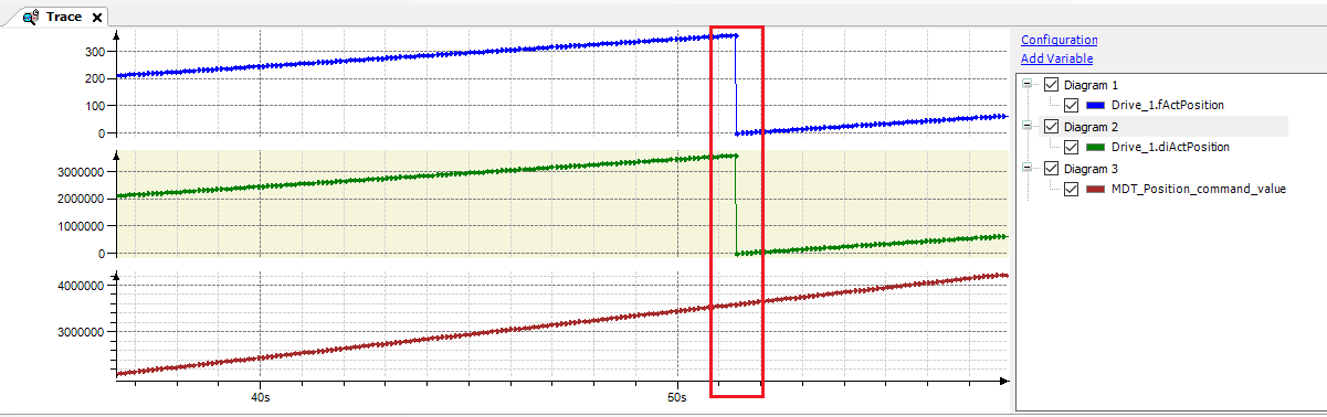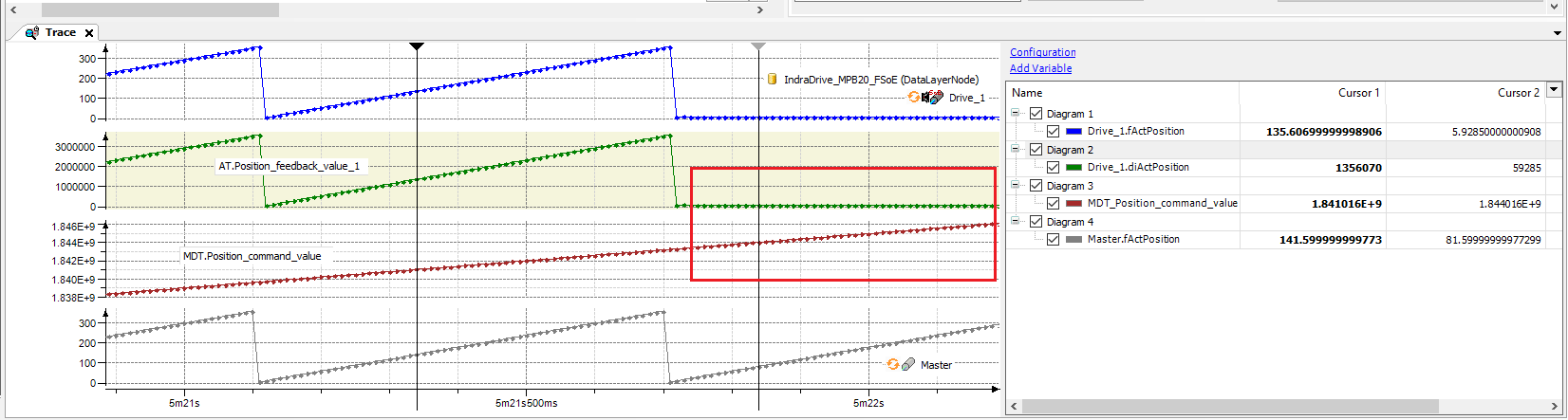 Test axis: IndraDrive, MPB-20 firmware. CODESYS SoftMotion 4.10.0.0. ctrlX CODESYS Softmotion Adapter 1.10.0.3.