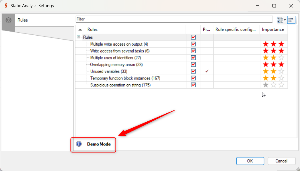 the CODESYS Development platform includes the so called Static Analysis light. This one is free. Additionally there's a more powerfull add-on CODESYS Static Analysis. Therefore a license is needed. The relevant license is implemented by the license of the CODESYS Professional Developer Edition, which contains some other useful development tools. The corresponding license can be achieved by Bosch Rexroth.