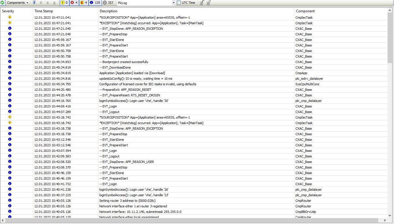 I'am using the IIoT library for the use of the mqtt client and the AWS mqtt client. All of a sudden since a few days (it worked before) I get an EXCEPTION [Watchdog] error in PLC engineering when the mqtt client OR the AWS mqtt client tries to connect with the broker. The weird part is that it worked this morning and after stopping and starting the PLC program I get the error again. When I disconnect the core from the outside the error is not showing up. But when the mqtt FB's are able to connect to the broker (outside of the network) the EXCEPTION [Watchdog] occurs. I'm 100% certain that the AWS and the 'normal' mqtt broker are up and running.Â