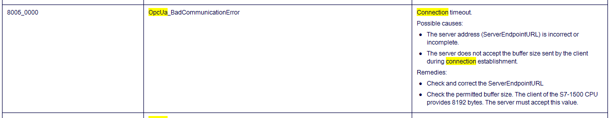 In the configuration of the client I can set up a connection to the CtrlX (only in TIA portal, not with hardware) but I can't connect the PLC via this function block. For the connection the function block uses the connection information of the configuration. For me it's weird because in the configuration it's possible to have access to the data layer but within the function block I always get the error message 8005_0000 within the subfunction OPC_UA_Connect (see screenshot).