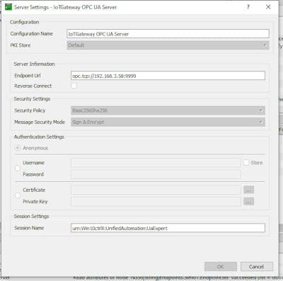 I tested it OPC UA connection to the IoT Gateway with UA expert and it works fine :