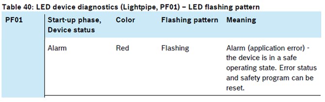 During initial commissioning if the FSoE device (i.e. ctrlX DRIVEplus) and SAFEX-C.1x safety control are not properly configured FSoE communications may not be established. This is indicated with the status “RunIntern” and a solid yellow PF01 LED on the SAFEX-C.1x safety control: