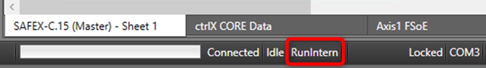 The “RunIntern” status can be seen in the status line of ctrlX SAFETY Engineering: