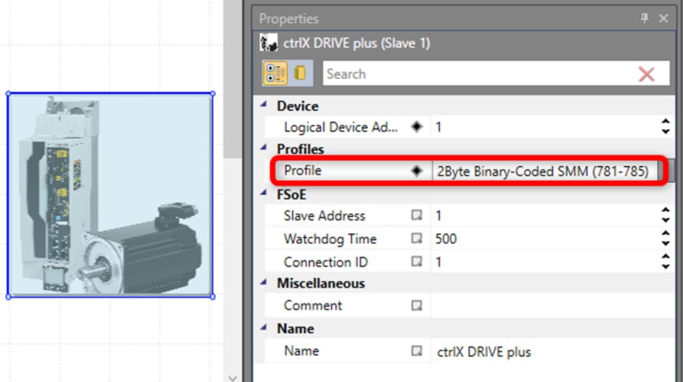 [callout type="info" text="For additional ctrlXDRIVEplus options such as profile 14 Byte Safe Values Configurable 802/813 please import the latest ctrlX DRIVE-ESI-file from the Bosch Rexroth Collaboration Room."]