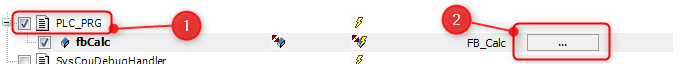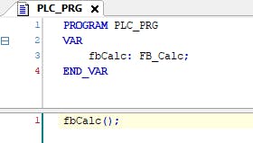 Fig. 6.: Declaration and implementation of PLC_PRG //Declaration: PROGRAM PLC_PRG VAR fbCalc : FB_Calc; END_VAR //Implementation: fbCalc();