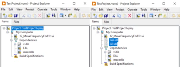 These DLL files (Dynamic Link Libraries) are essential for the eal4LabVIEW library to function correctly. You will need to manually add both files to your LabVIEW project to ensure full integration and functionality.