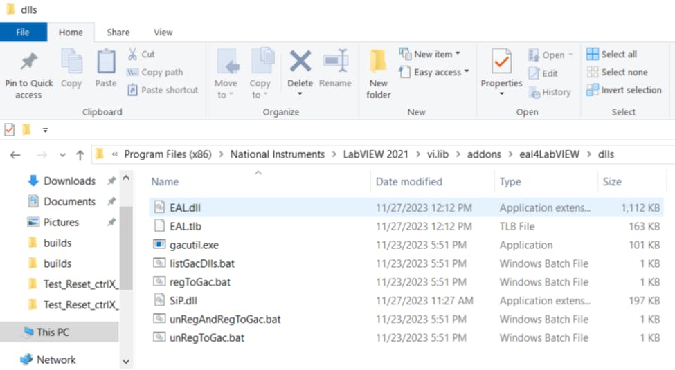 Once the installation is complete, a corresponding folder will be created within the National Instruments installation directory. This folder will contain two important files: EAL.dll and SIP.dll.