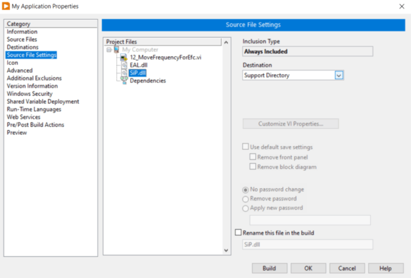 Note 2: The EAL.dll and SIP.dll files must be placed in the Support Directory, which is the default location for DLLs in a standard LabVIEW configuration. By default, this corresponds to the .\data\ subdirectory.