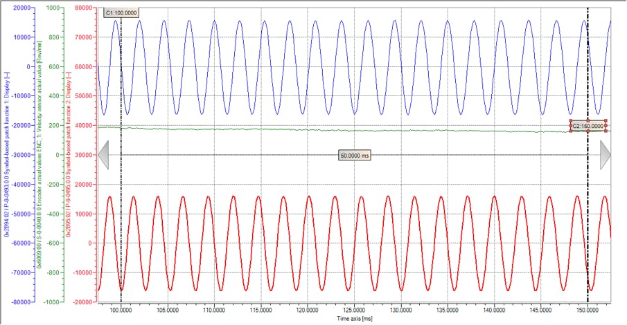 A) Output of SinCos track signals with ctrlX DRIVE via symbol-based patch function
