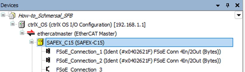 Notes and instructions for operating the Schmersal “Safety Fieldbox - SFB” as FSoE slave on Bosch Rexroth Compact-Safety-Controller “SAFEX-C.1x” as FSoE master and Automation-Controller “ctrlX CORE X3” as EtherCAT master.