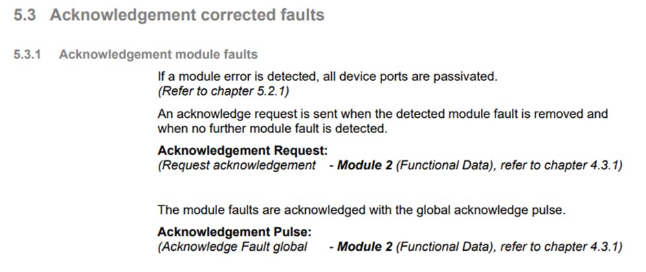 During power-up or communication interruption, module errors can be detected by the SFB. To cancel the passivation, it may be necessary to send an initial acknowledgement pulse: