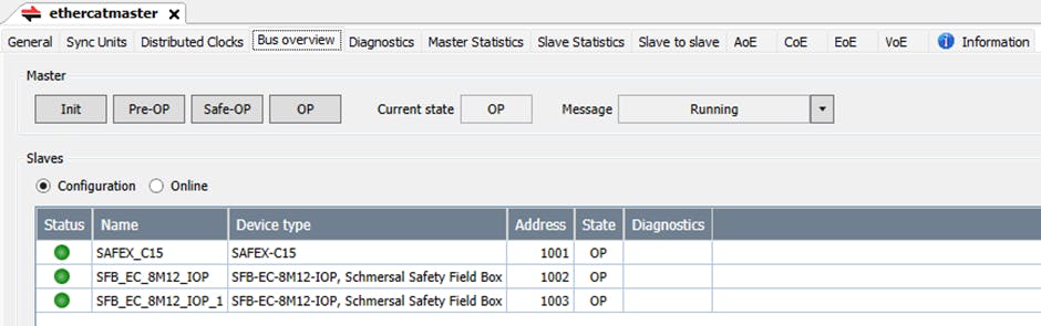 Double-click on "ethercatmaster" in the project tree and select the tag "Slave to slave".