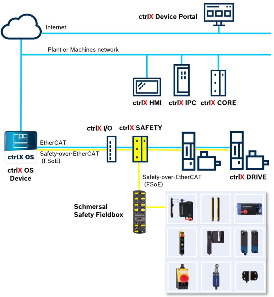 Systemlayout ctrlX AUTOMATION with Safety Fieldbox