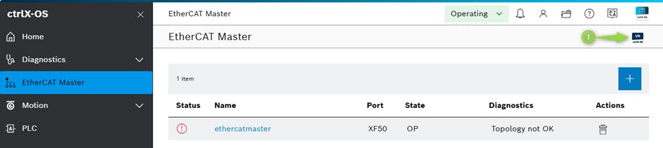 Start ctrlX I/O engineering - either via the icon at the top right of the "ethercatmaster" or separately from the PC.