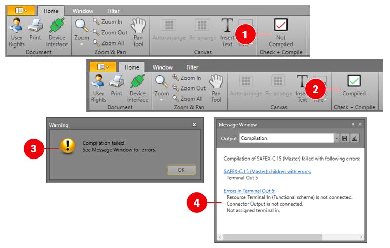 Compiler errors will be shown in the Message Window, correct errors then repeat step number 1.