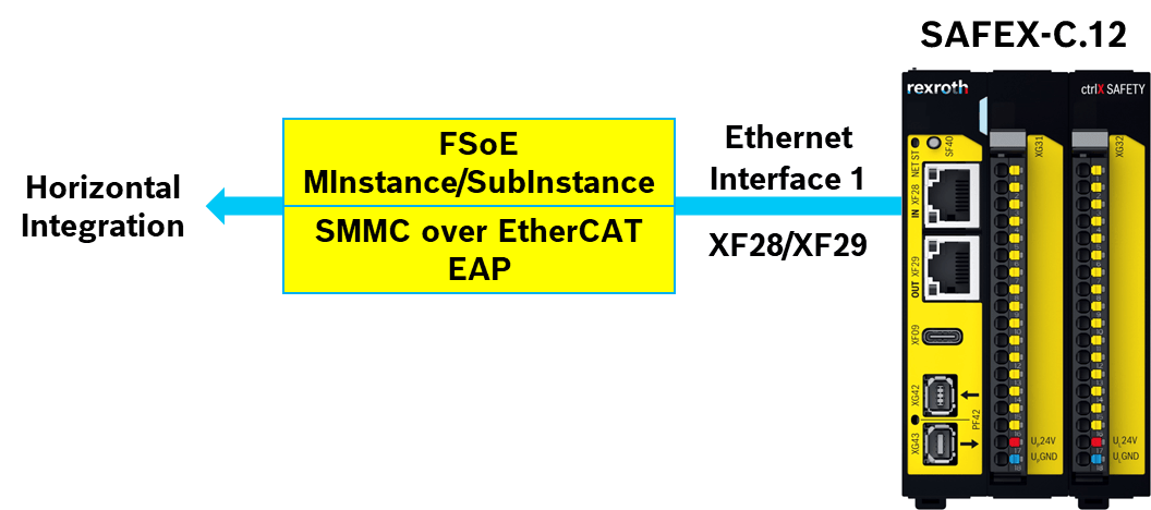 Safety over EtherCAT (FSoE) on Ethernet Interface 1 XF28/XF29 (Primary), same EtherCAT network