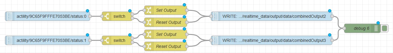 Create your logic and write your outputs in NodeRED for ctrlX OS, flow attached