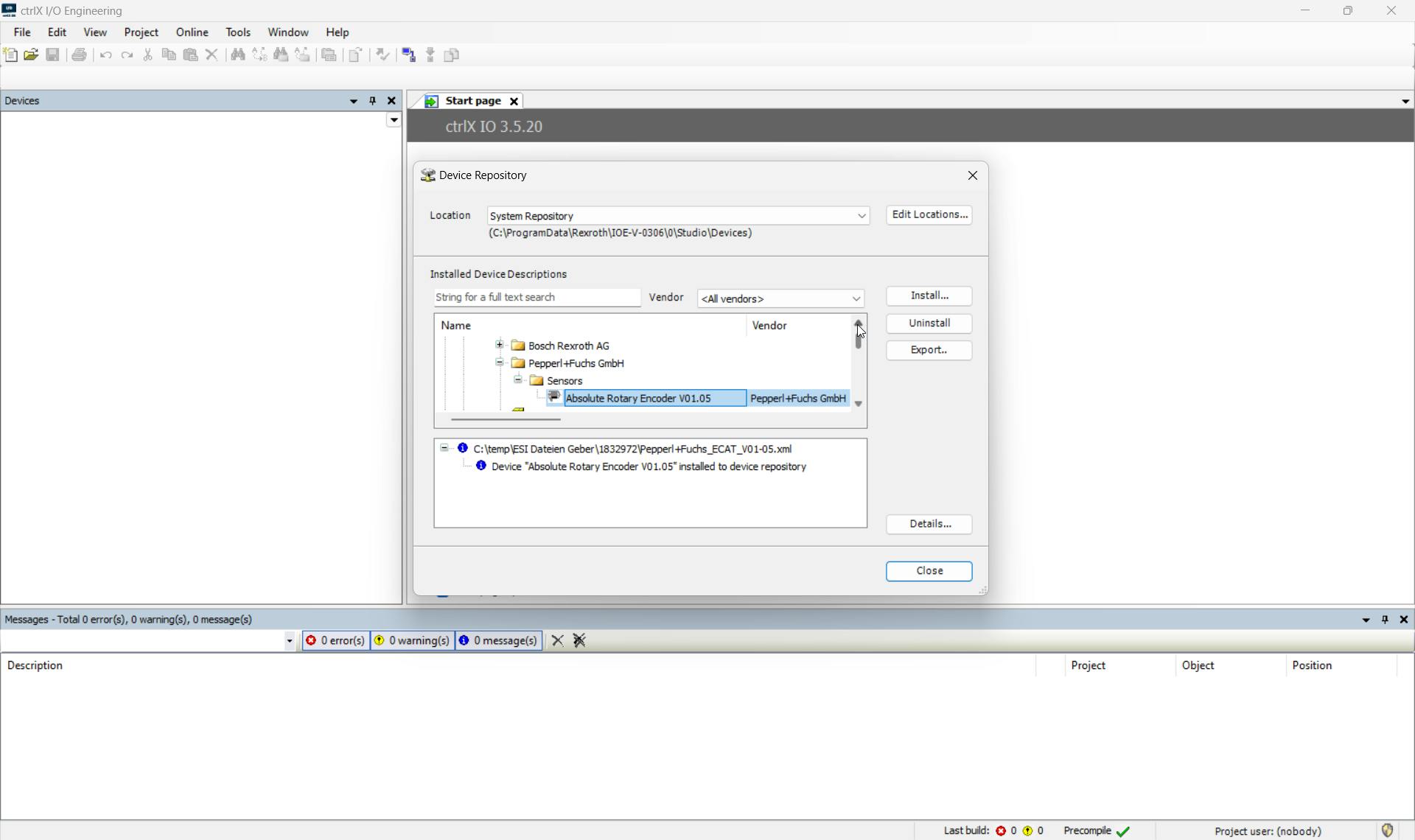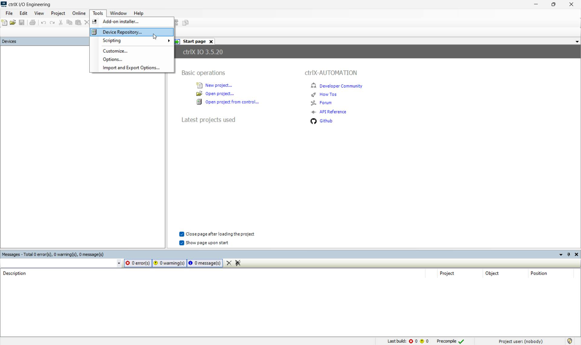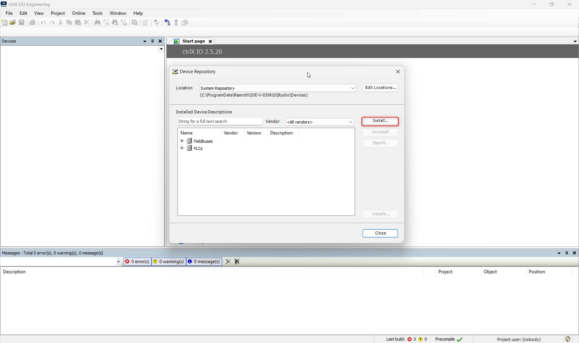 Open ctrlX I/O Engineering and open the Device Repository: