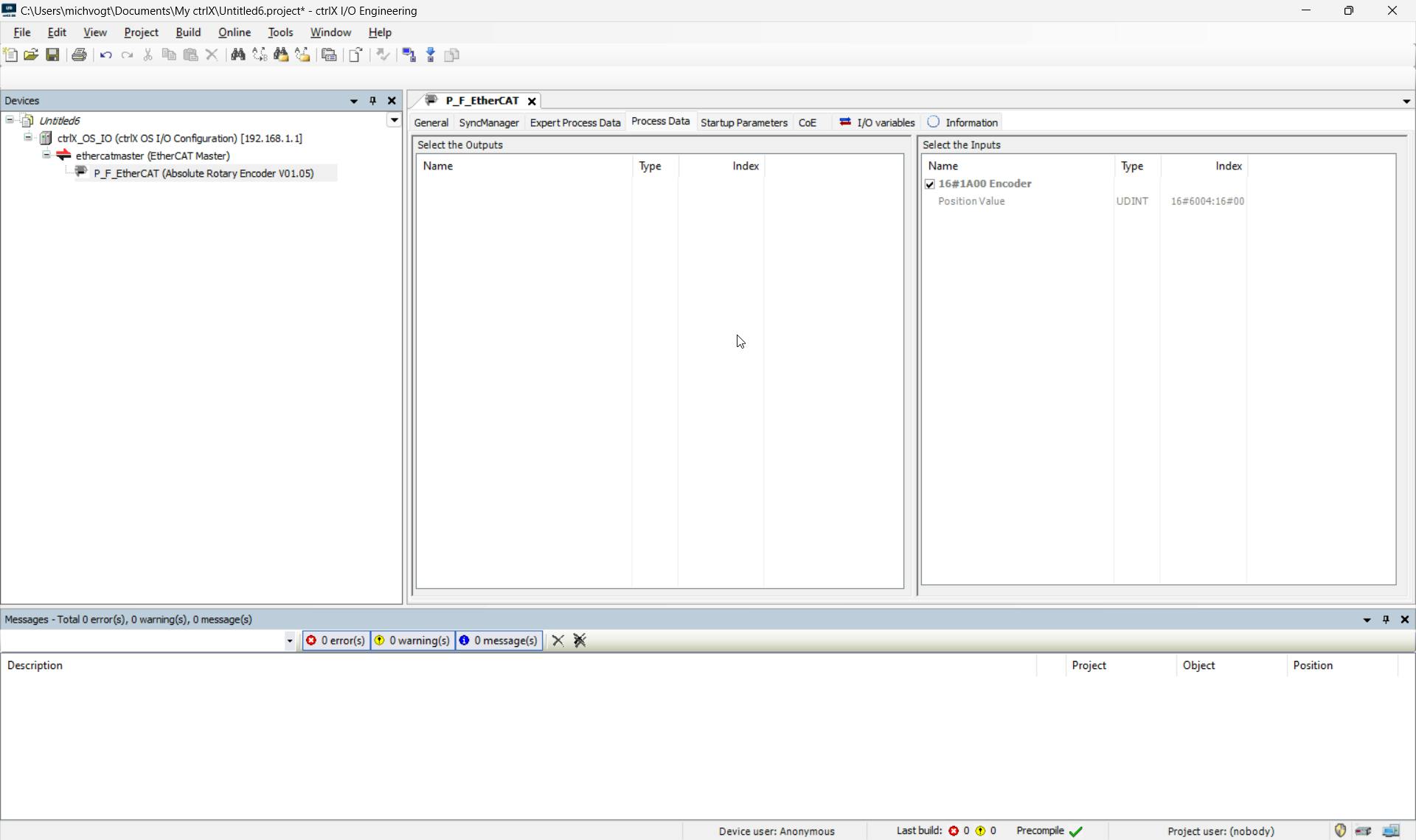 Under the “Process Data” tab, you can see the position value that is transferred cyclically: