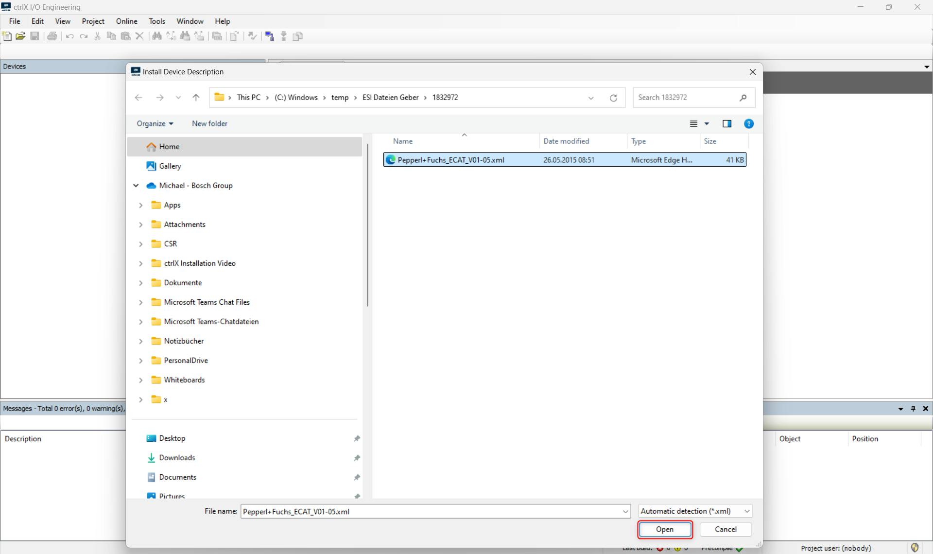Select the ESI-File and press "Open":