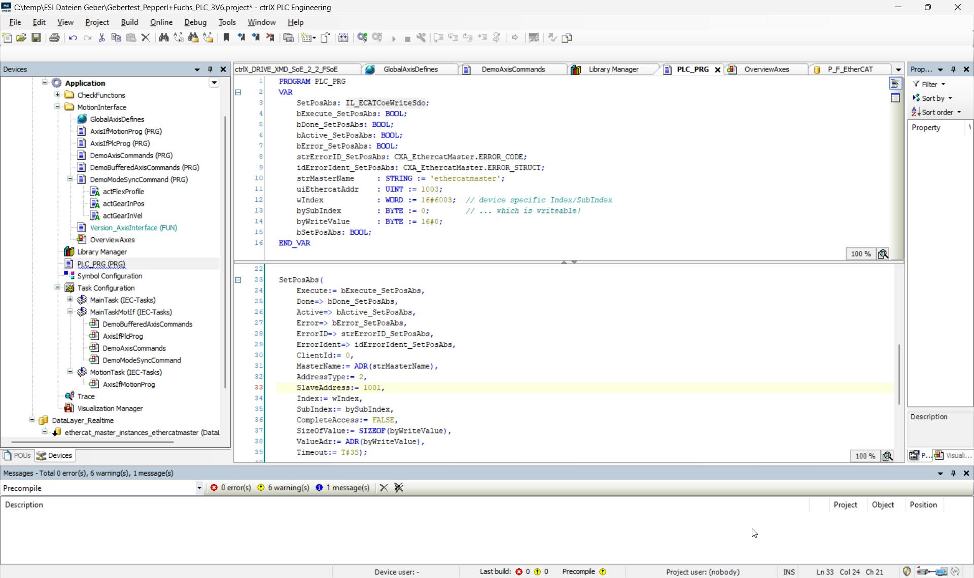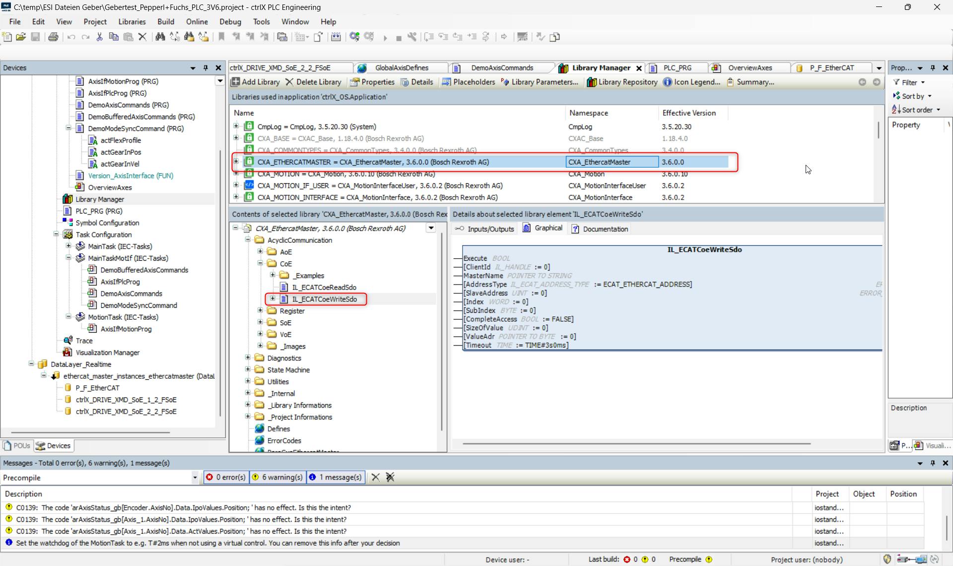If you want to write a position in the encoder, you must insert the LIB CXA_ETHERCATMASTER.