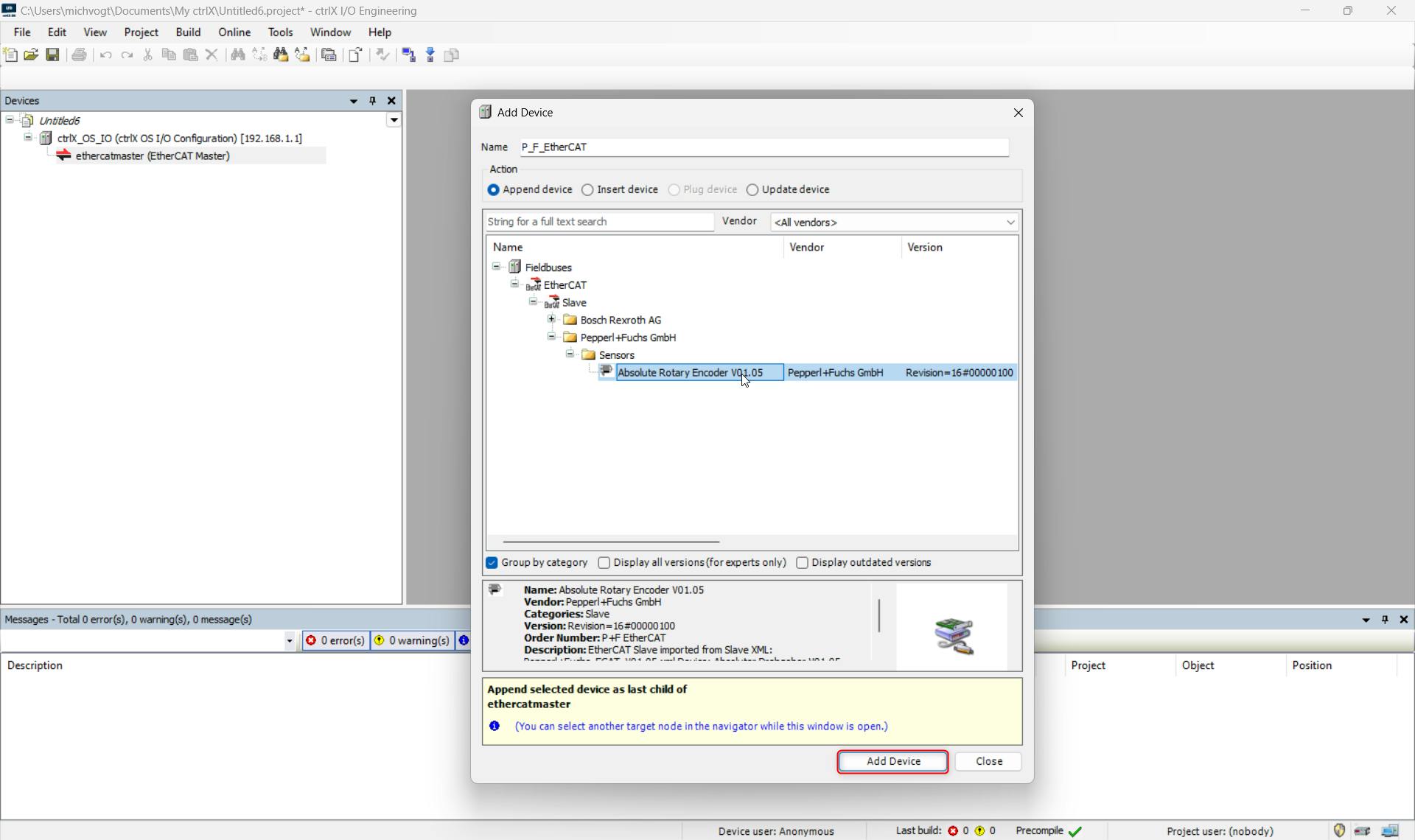 The Device is now installed in the ctrlX I/O Engineering: