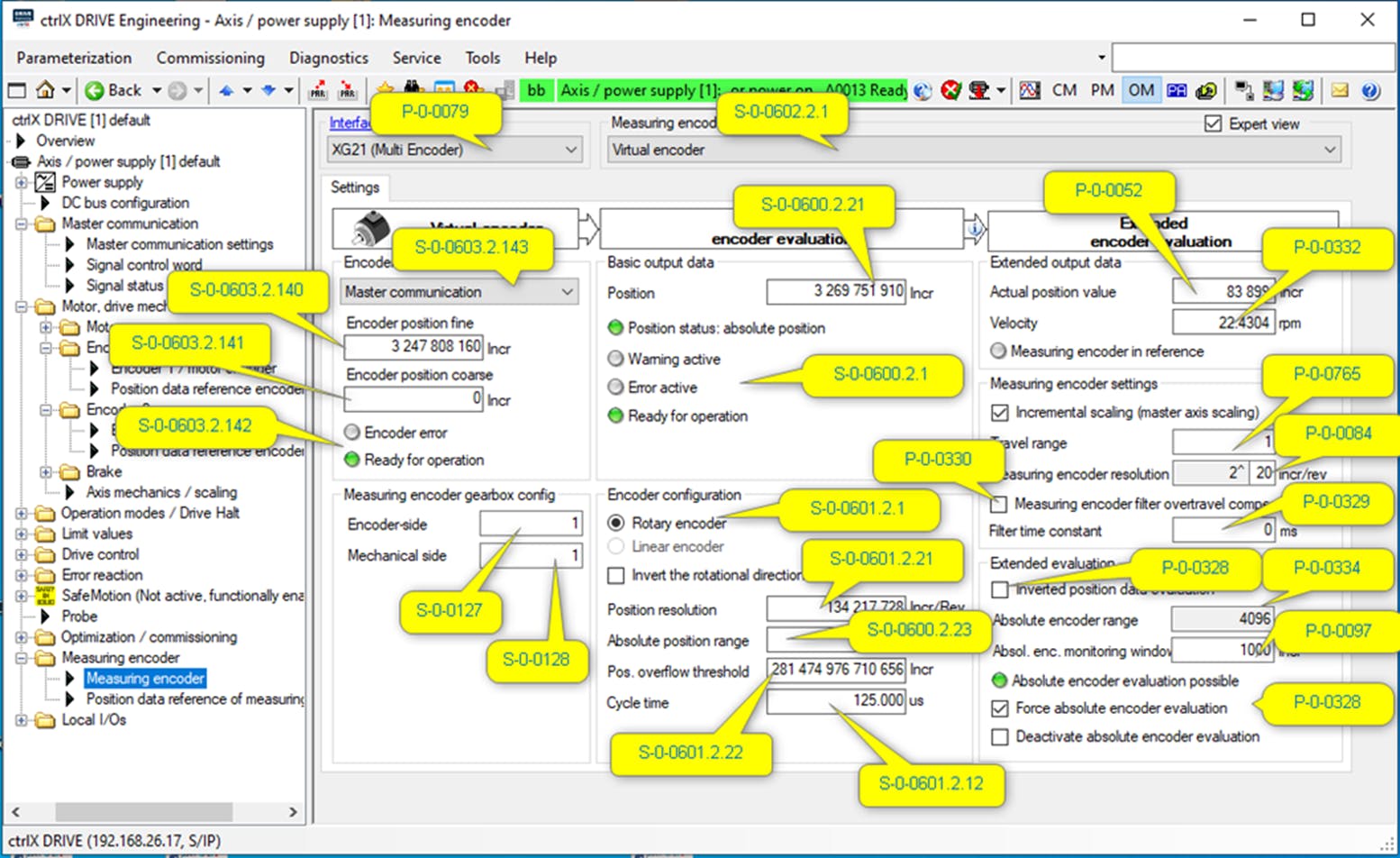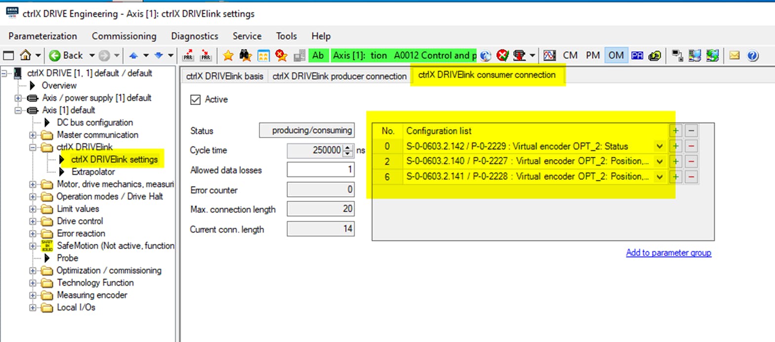 In order to be able to view the parameterization of the ctrlX DRIVE XCD in detail, I have created a backup of all parameters, which can be viewed offline with the ctrlX Drive Engineering.