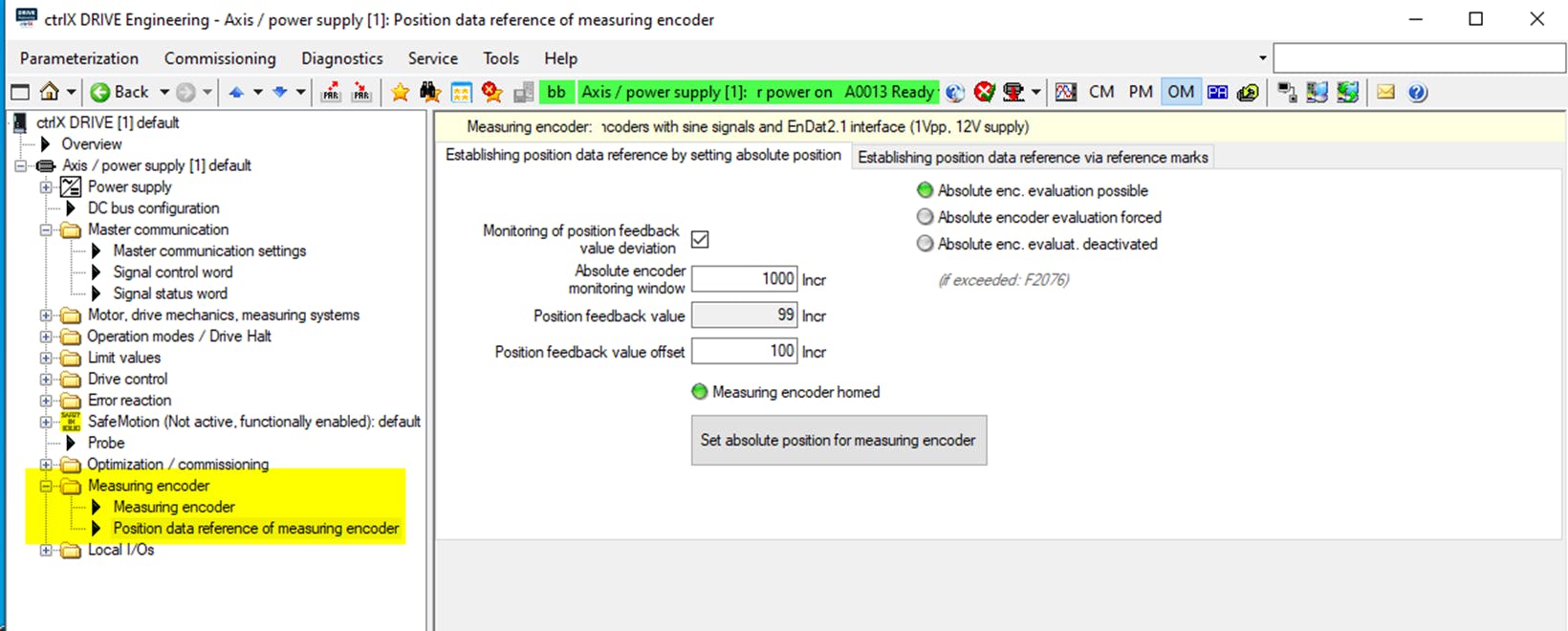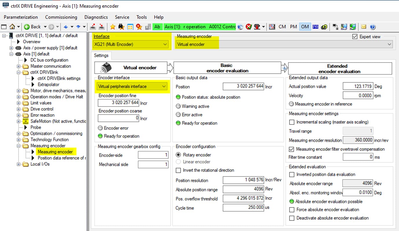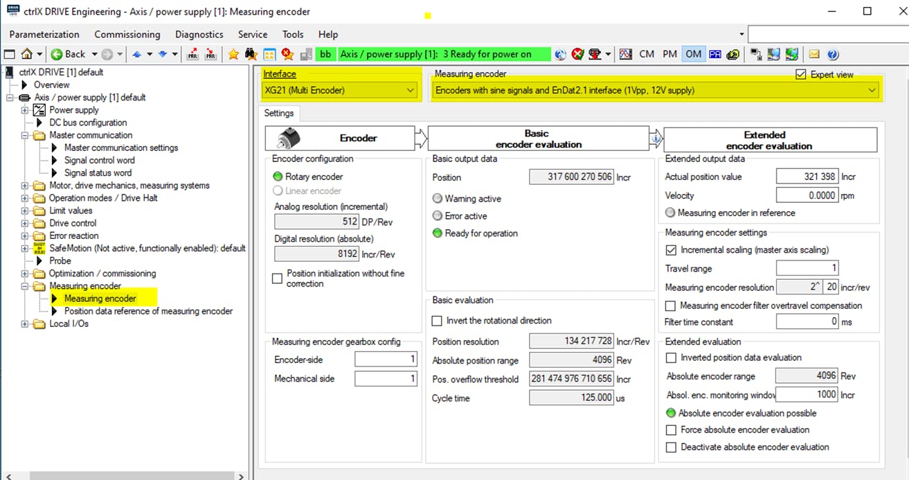ctrlX DRIVE XCS, real encoder (EnDat2.1) on XG21 interface