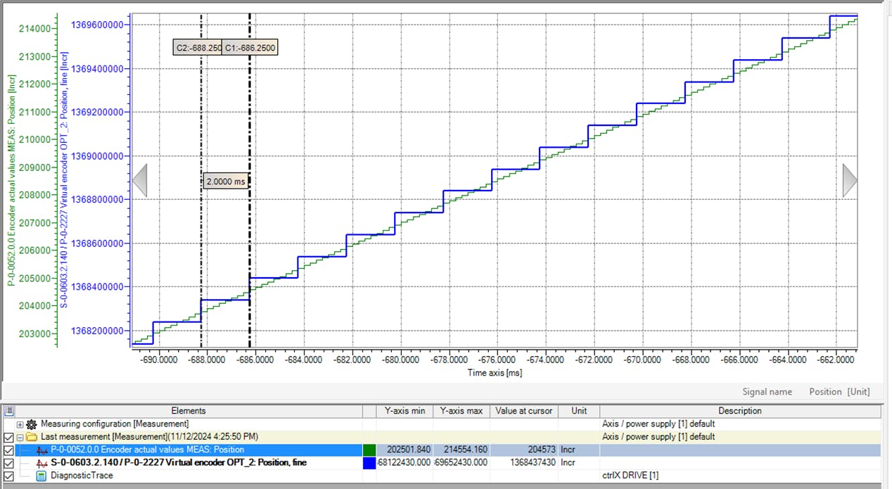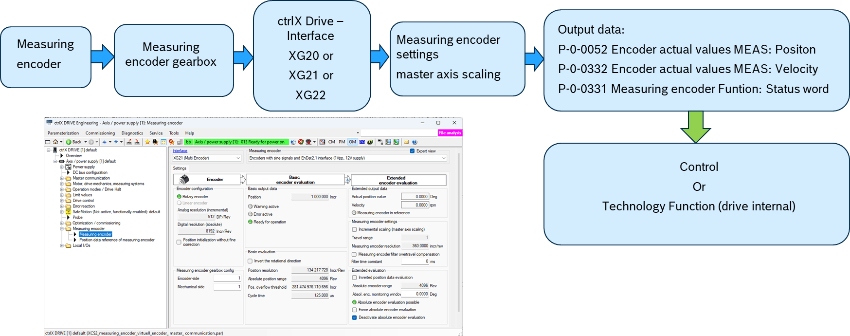 There is currently no function in the ctrlX DRIVE that directly uses the measuring interface functionality. In the future, technology functions in the ctrlX DRIVE might use the information.