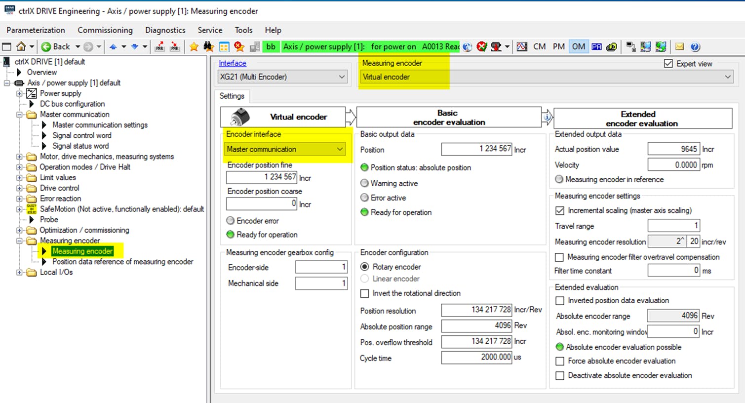The measuring encoder value can be passed on to the higher-level controller.