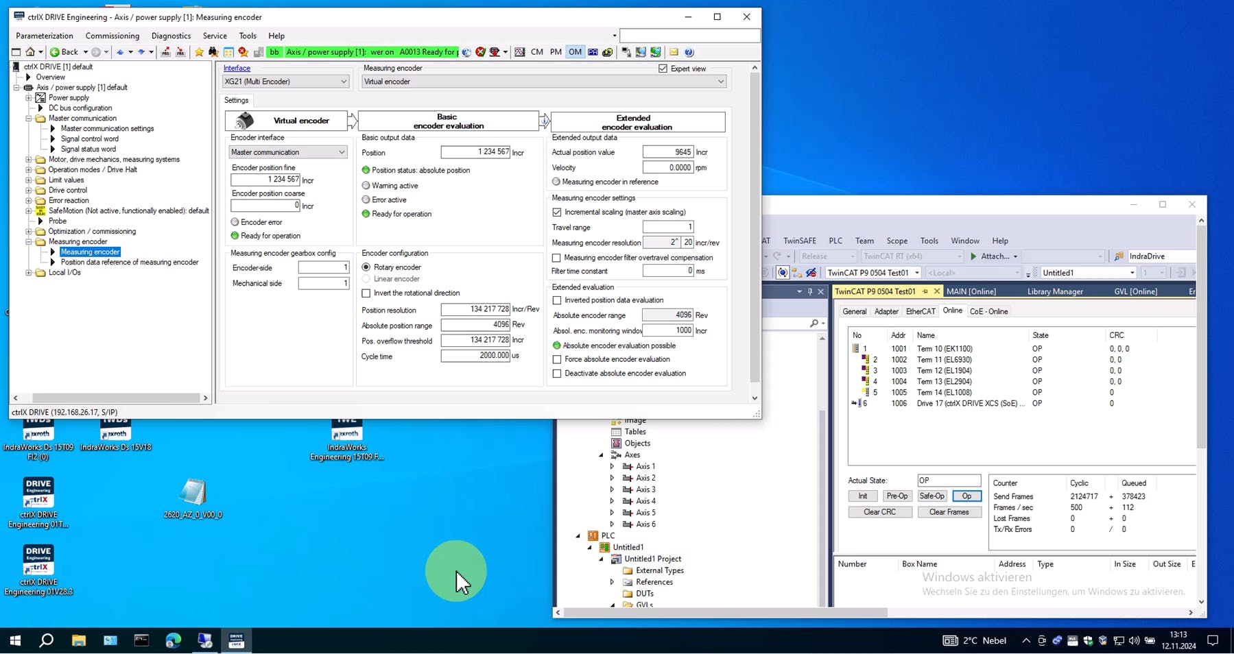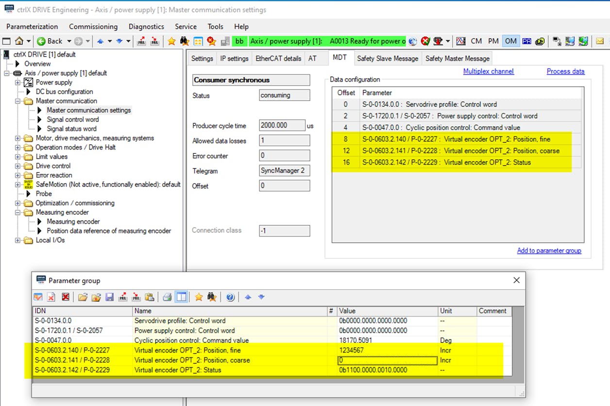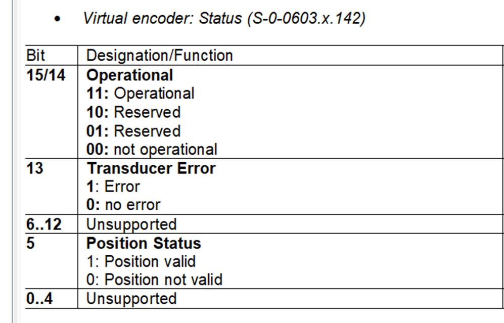 Leadership communication: The leadership communication can S-0-0603.2.140 / P-0-2227 Virtual encoder OPT_2: Position, fine" and S-0-0603.2.141 / P-0-2227 Virtual encoder OPT_2: Describe position, coarse" (64 bit value)