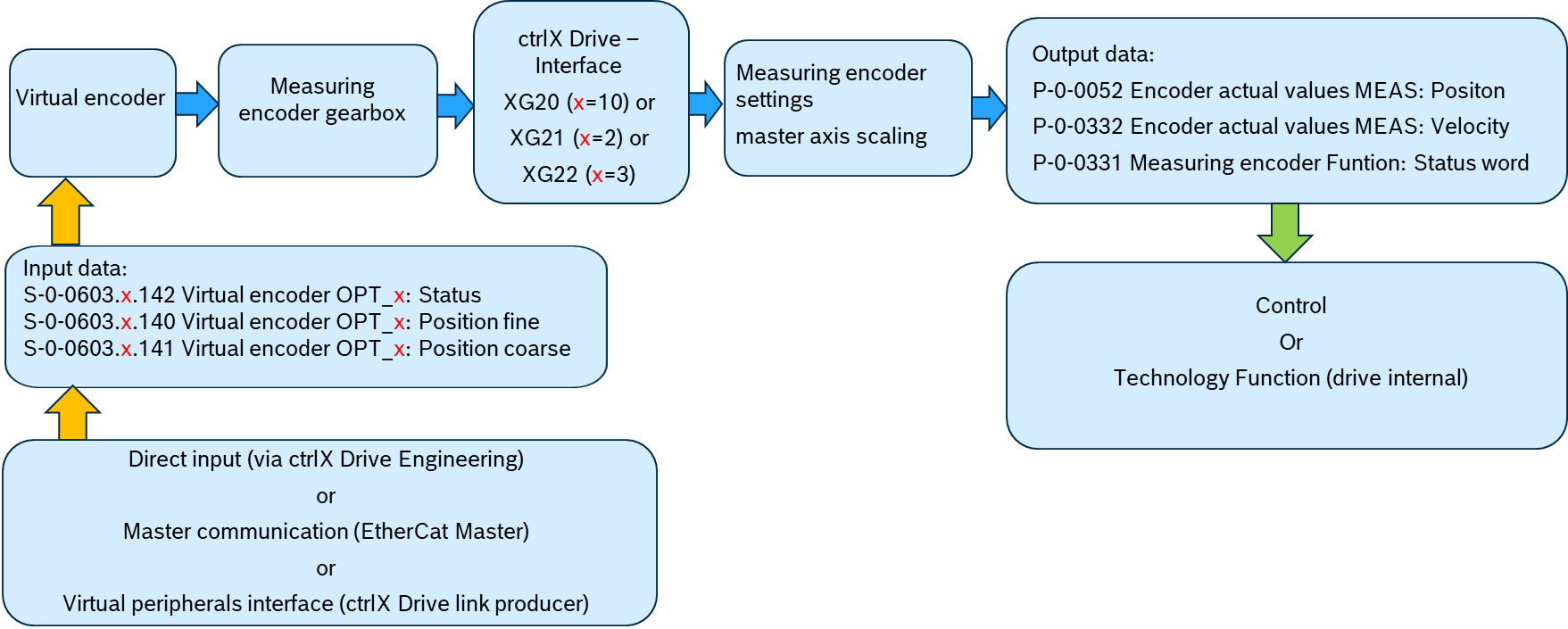 ctrlX DRIVE XCS, XG20 Motor encoder, XG21 Endat2.1, XG22 virtual encoder for measuring encoder (direct input)