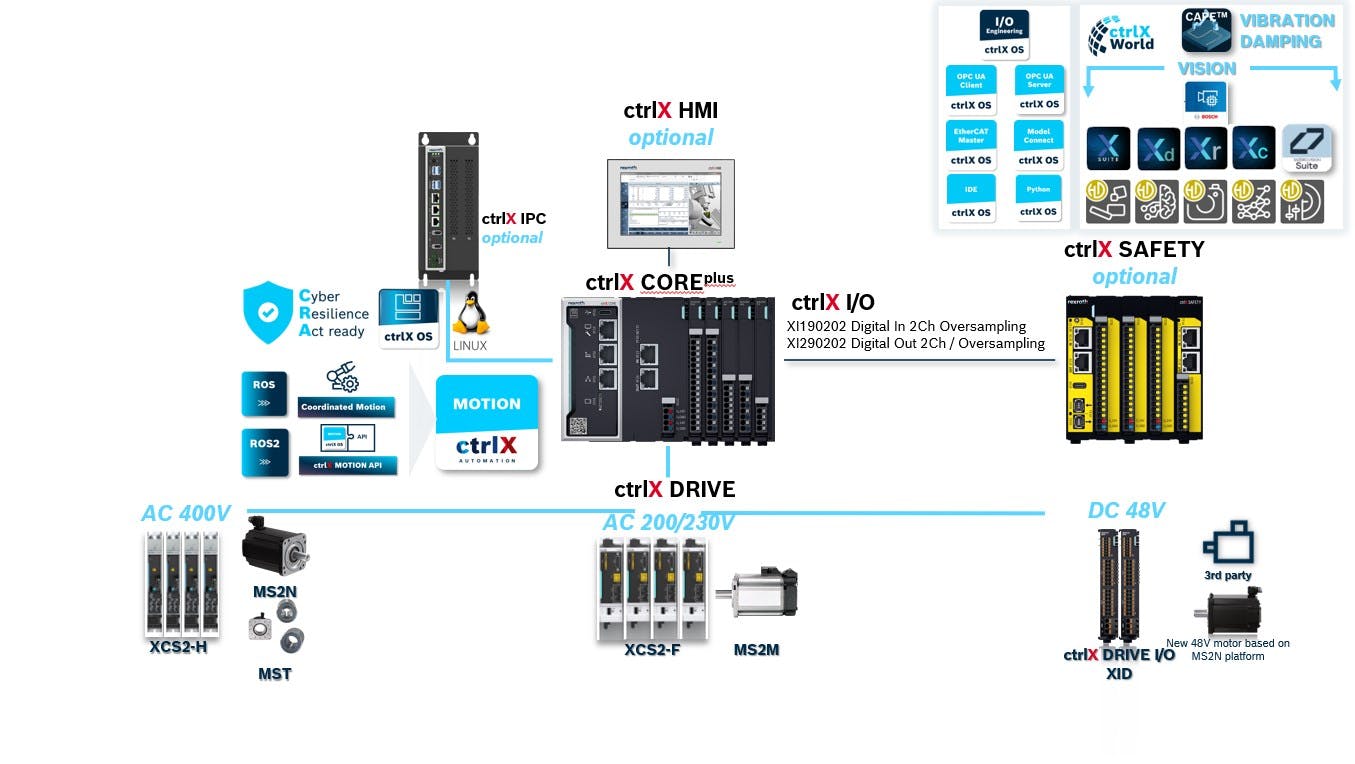 Note: Configuration example for the 48V Technology will be expectedly published in 07.2026, as some of the components of this Solution Set are not depicted yet in ctrlX Configurator. In the meantime please feel free to contact us for a product demo.