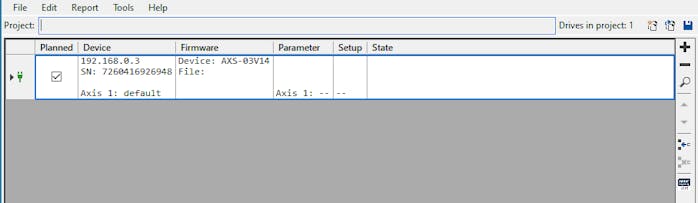 If using ctrlX DRIVE Serial Setup with user interface you are able to create a project from a sample machine and use this to start up identical machines.