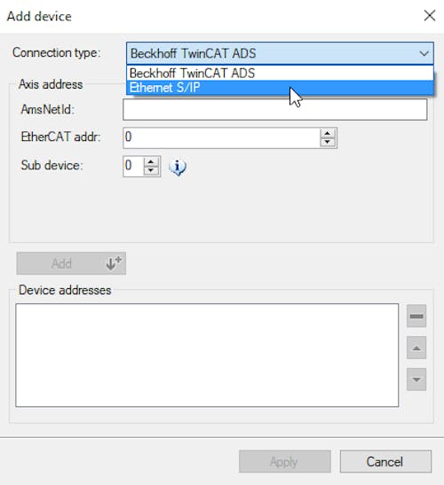 Is only possible with communication via IP (S/IP) oder TwinCAT ADS