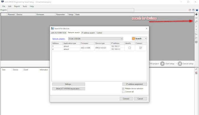 2. Â Start Serial Setup with user interface (in ctrlX DRIVE Engineering)