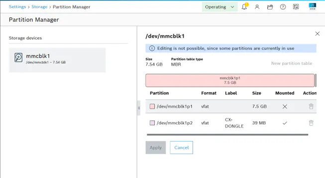 One of these partitions must be at least 39MB in size and have the following name: CX-DONGLE