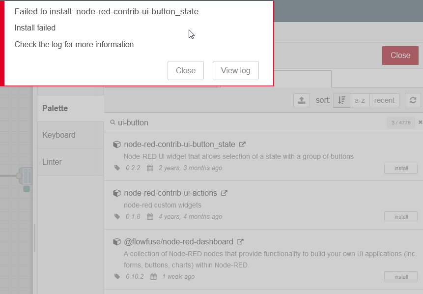 2023-12-21T07:49:10.358Z [err] Â request to https://registry.npmjs.org/node-red-contrib-ui-button_state failed, reason: getaddrinfo EAI_AGAIN registry.npmjs.org