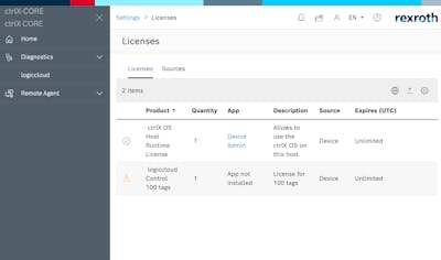 Hi! I'm encountering a warning sign in the Licenses section of the Core Settings page. The license is for our snap which is sideloaded on the device for validation. It integrates with the Core's licensing system.
