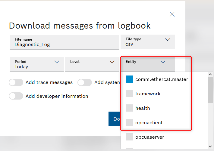 To monitor the cause of occasional EtherCAT communication disconnections.ย We activate the persistent logbook of ctrlX CORE.