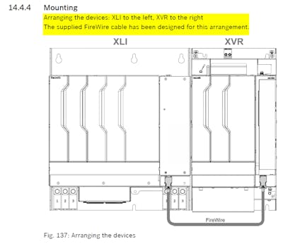 Our customer has an application with XLI, XVR, 2x XMD, and a KCU. The KCU supplies several Mi's and has higher power demand than the XMD's. The project planning manual shows the XVR should be directly to the right of the XLI and connected with FireWire cable. They are asking if they could instead put the XMD in between XLI and XVR. So in this case the XMD would be on the left of XVR and the KCU on the right of XVR. I don't see any accomodation for this in the project planning manual. We don't sell multiple lengths of FireWire cable, for example. But the customer is asking so I'm just confirming.ย
