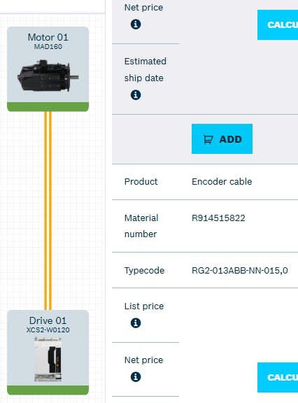 What is the right encoder cable between MAD160C-0100-SA-S2-... and XCS2-W0120ABN-01AETT0ECNN ?