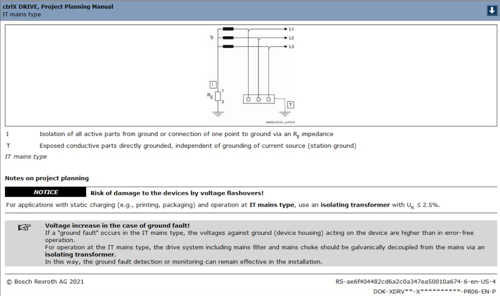 But then also in the manual is written : "To operate the drive system at an IT mains type, electrically decouple the drive