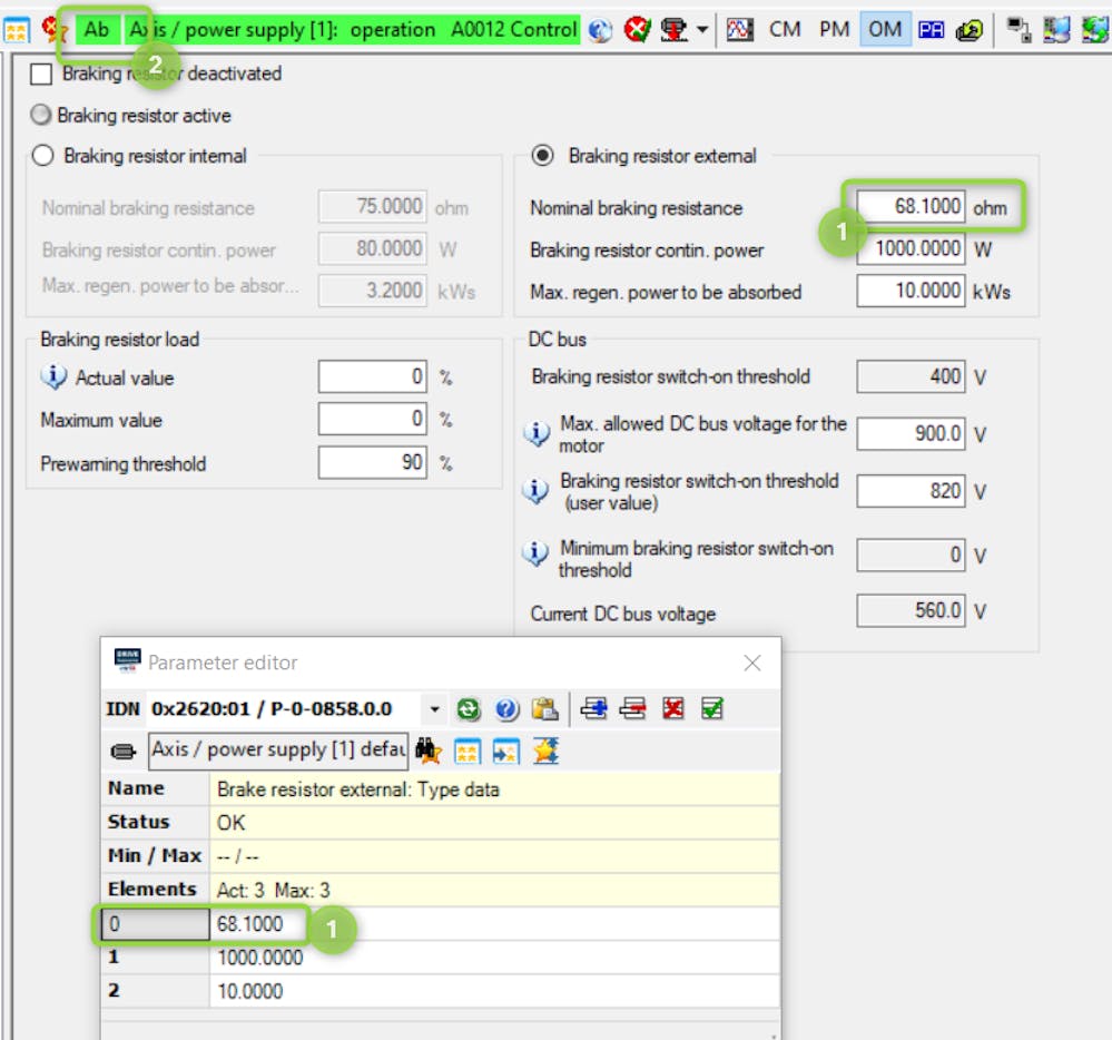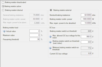 A customer has an XMS2-W0023 converter and they need to attach an external resistor. They purchased a HLR01.2N-01K0-N68R0-E-007-NNNN which appears to meet the minimum required resistance specs. They have updated the brake resistor page as per below:
