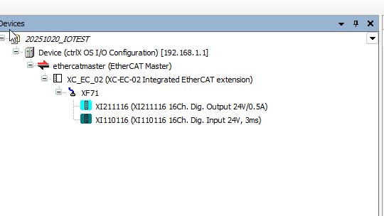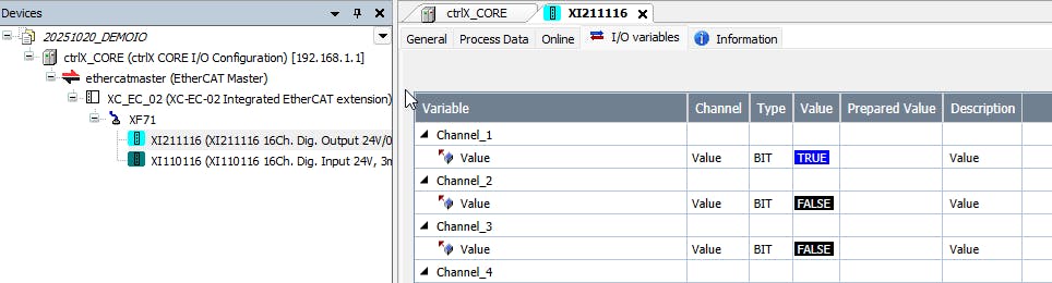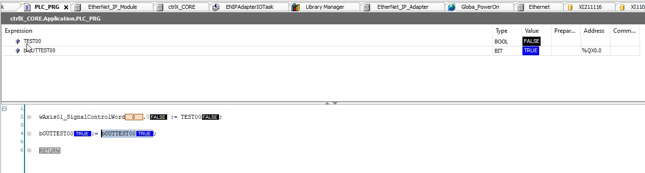 I'm trying the test that the I/O module has been installed on the ctrlX CORE X5.