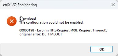 The download from ctrl I/O Engineering to ctrlX CORE could not be completed.