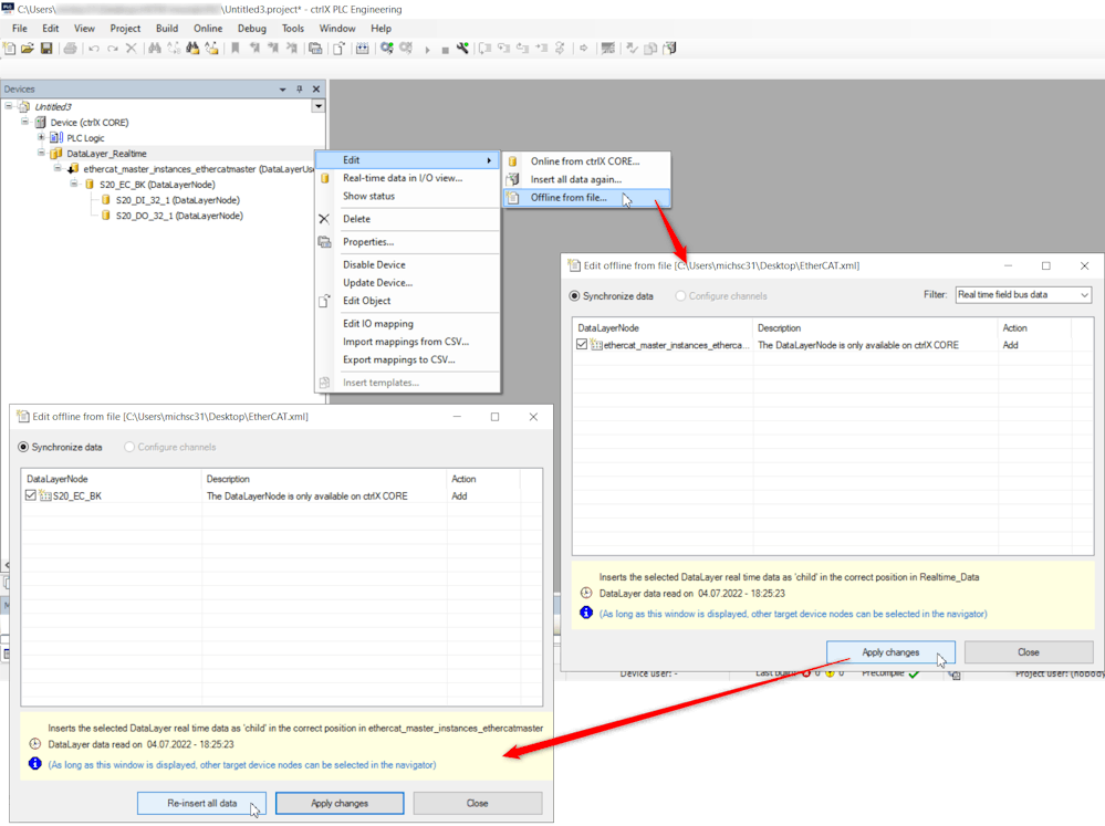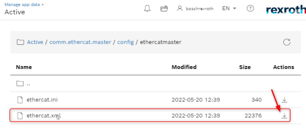 without the data being available on the ctrlX. Edit the ctrlXIOEng and download the config via "Saving Ethercat configuration...":