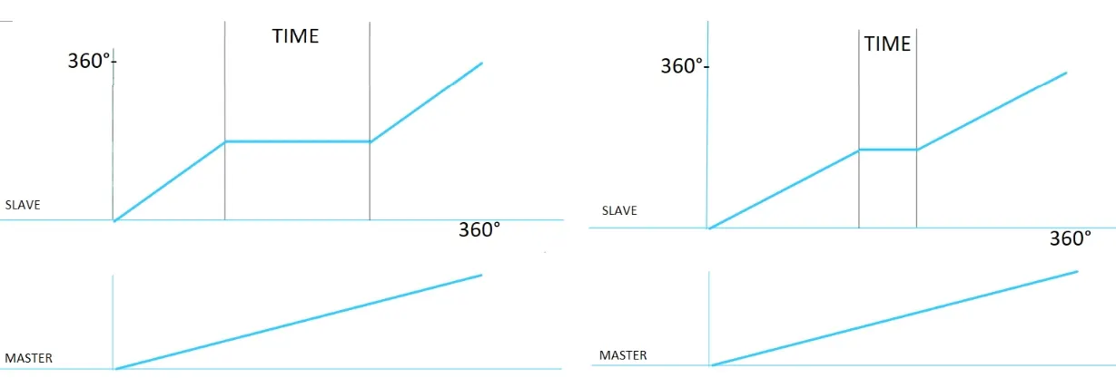 In addition, I would like this cam to work at any master speed. Obviously, the dwell time must always be respected, so the master must never go from 0° to 360° in a time less than or equal to the dwell segment time.