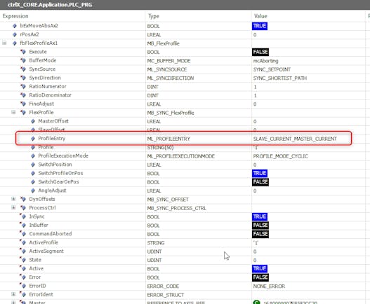 FlexProfile position jump at cam switch and unwanted repositioning after master stop