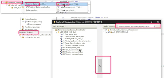 I could do a non real time access to the datalayer but I would prefer to use the cyclic data from S-0-0135.